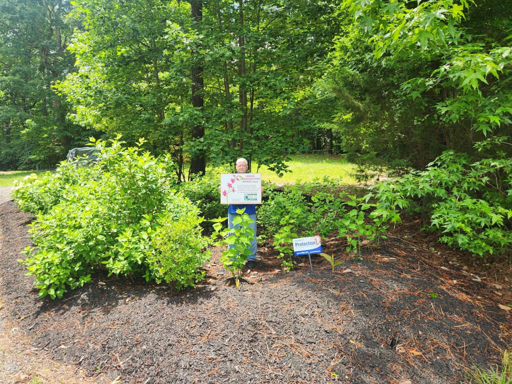 A Rain Garden is a shallow landscaped depression that incorporates many pollutant removal mechanisms including temporarily ponding stormwater runoff 6 to 12 inches above a mulch layer that encourages the rain water to infiltrate into the underlying native soil within 48 hours. Rain gardens are an easy and effective tool that we can use to help reduce stormwater runoff from residential properties. These gardens are strategically placed to intercept pollutant laden stormwater runoff until it can be fully absorbed into the ground. Their design allows the rain garden to serve almost as a bowl that collects water from downspouts or overland flow across a property. The water is then able to slowly infiltrate into the underlying soil. Rain gardens can come in all different shapes and sizes but are best when planted with native plants that are indigenous to Virginia. These plants require less maintenance once established, have deep roots that soak up lots of water, provide food and habitat to wildlife, and are beautiful.